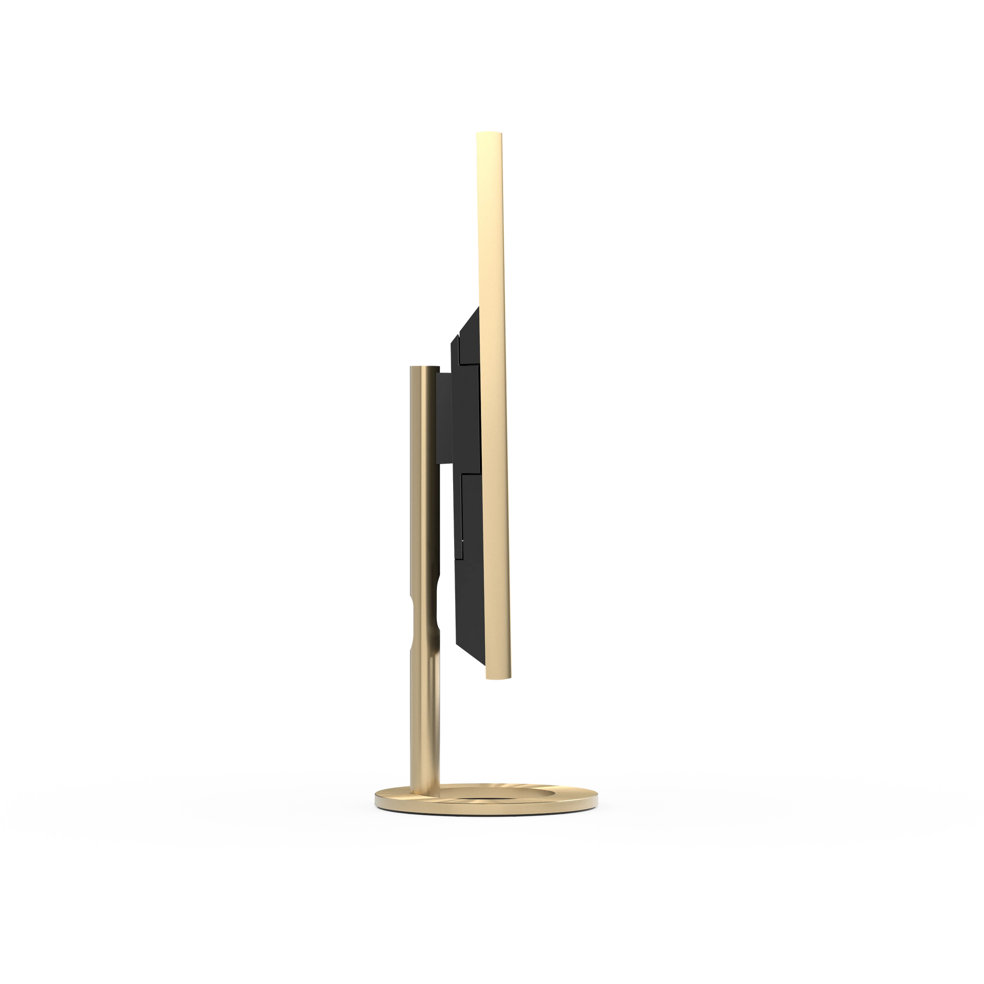 Le tube vertical et l'anneau en aluminium soigneusement travaillé sont ultralégers mais robustes et disponibles dans les couleurs assorties Argent, Noir Anthracite et Teinte d'or ; le pied de sol permet de faire pivoter l'écran de 180° de chaque côté, ce qui l'adapte parfaitement à votre espace.